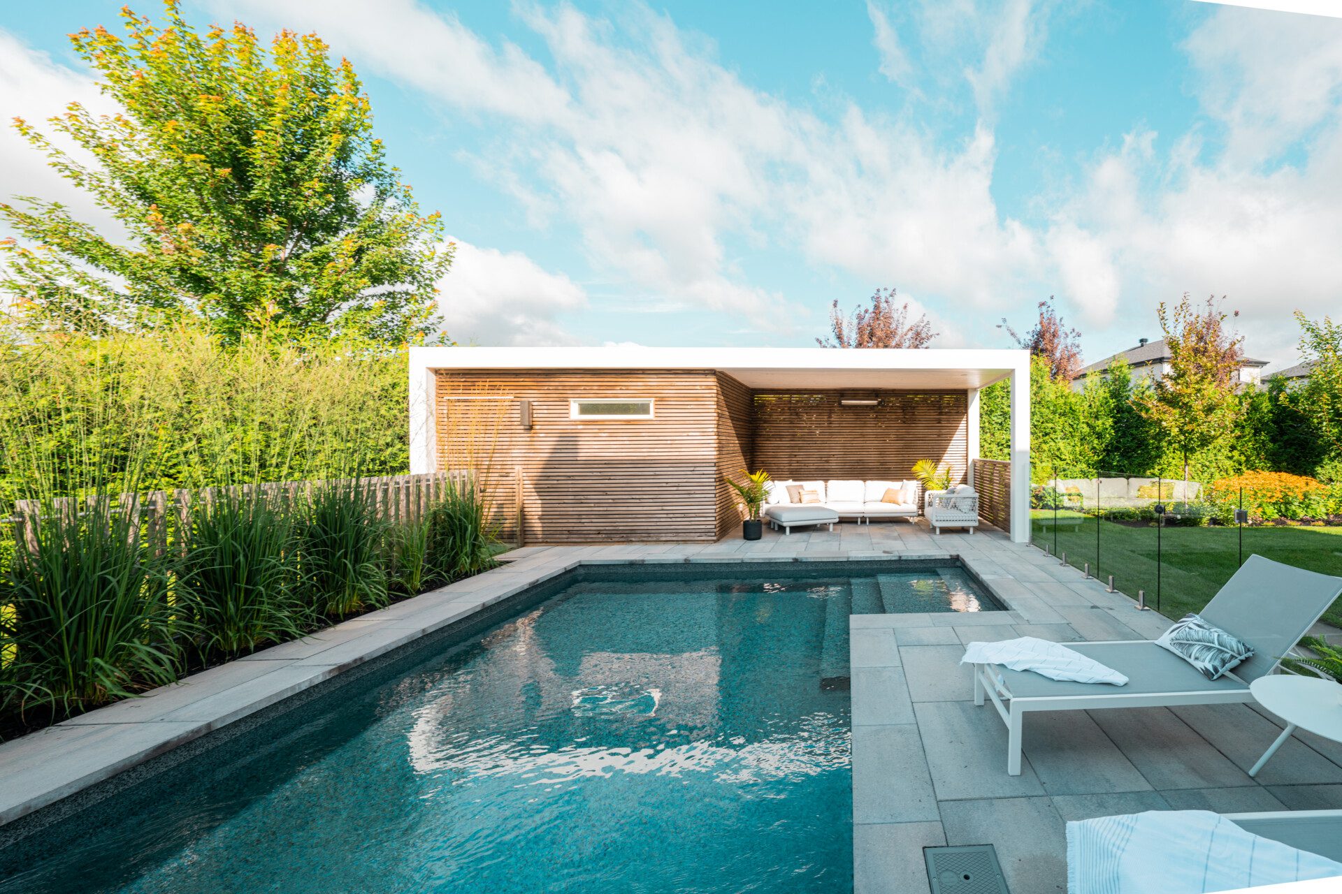 Par la suite, il faut bien planifier l’aménagement des espaces de vie autour de la piscine, s’assurer qu’elle soit en harmonie avec les autres aménagements de la cour et qu’elle soit également sécuritaire pour votre famille et le voisinage.